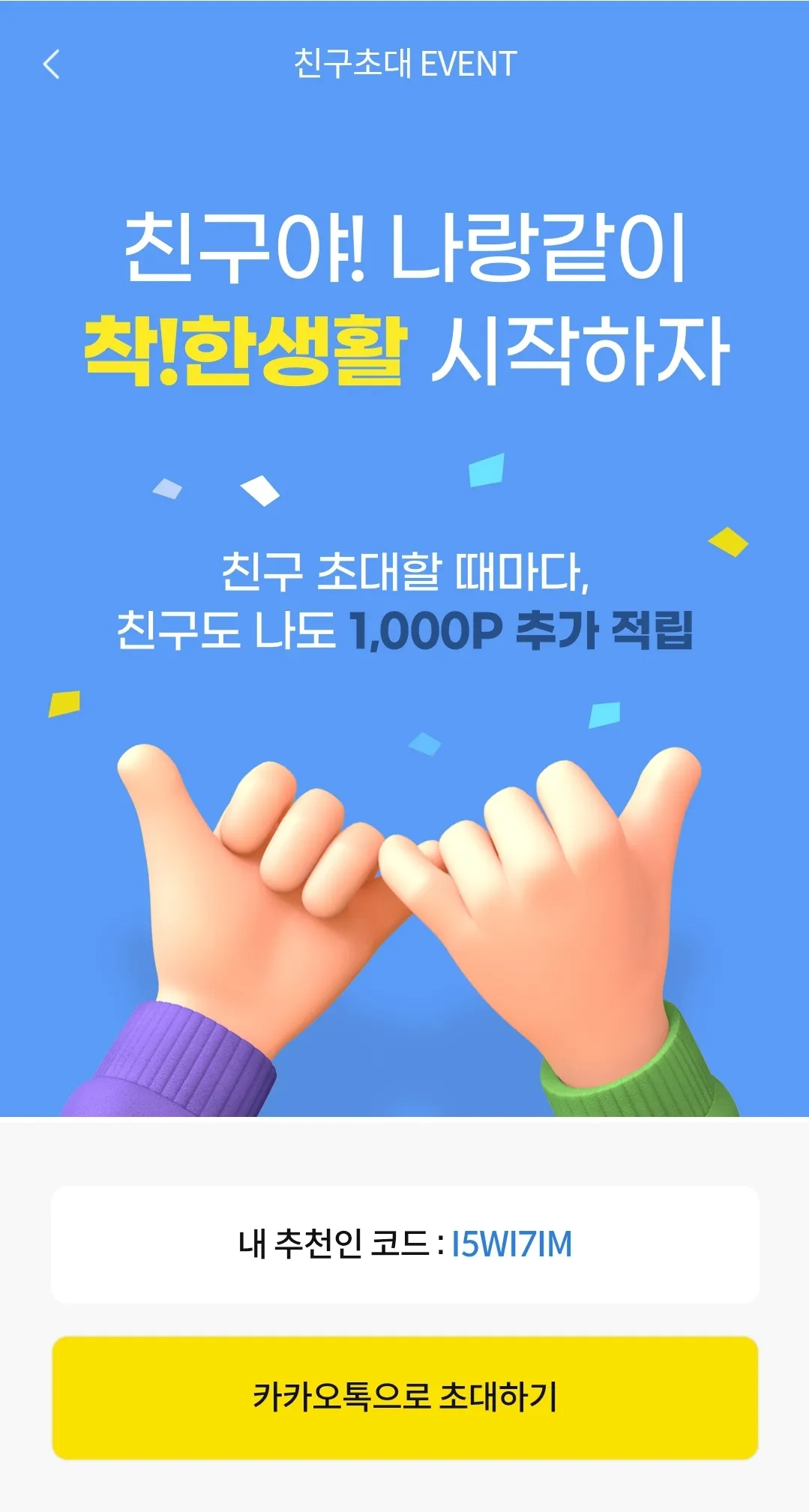 설치 후 회원가입 시 추천인 코드( I5WI7IM )를 입력하면 1,000포인트 즉시 지급받아요.