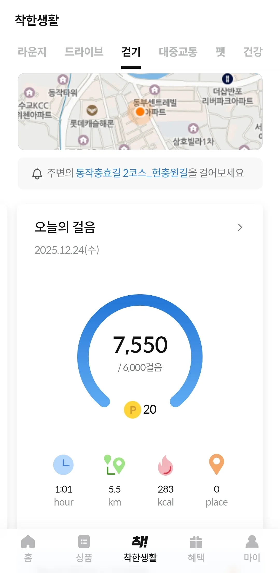 지금 착! 앱 다운로드해 매일 25원(포인트 기준) 벌며 착한 생활 시작하세요.