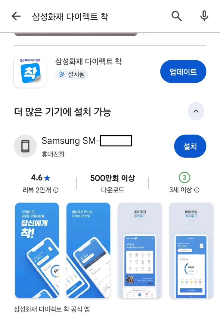 삼성화재 다이렉트 착 앱을 구글 플레이나 앱스토어에서 다운로드하세요.