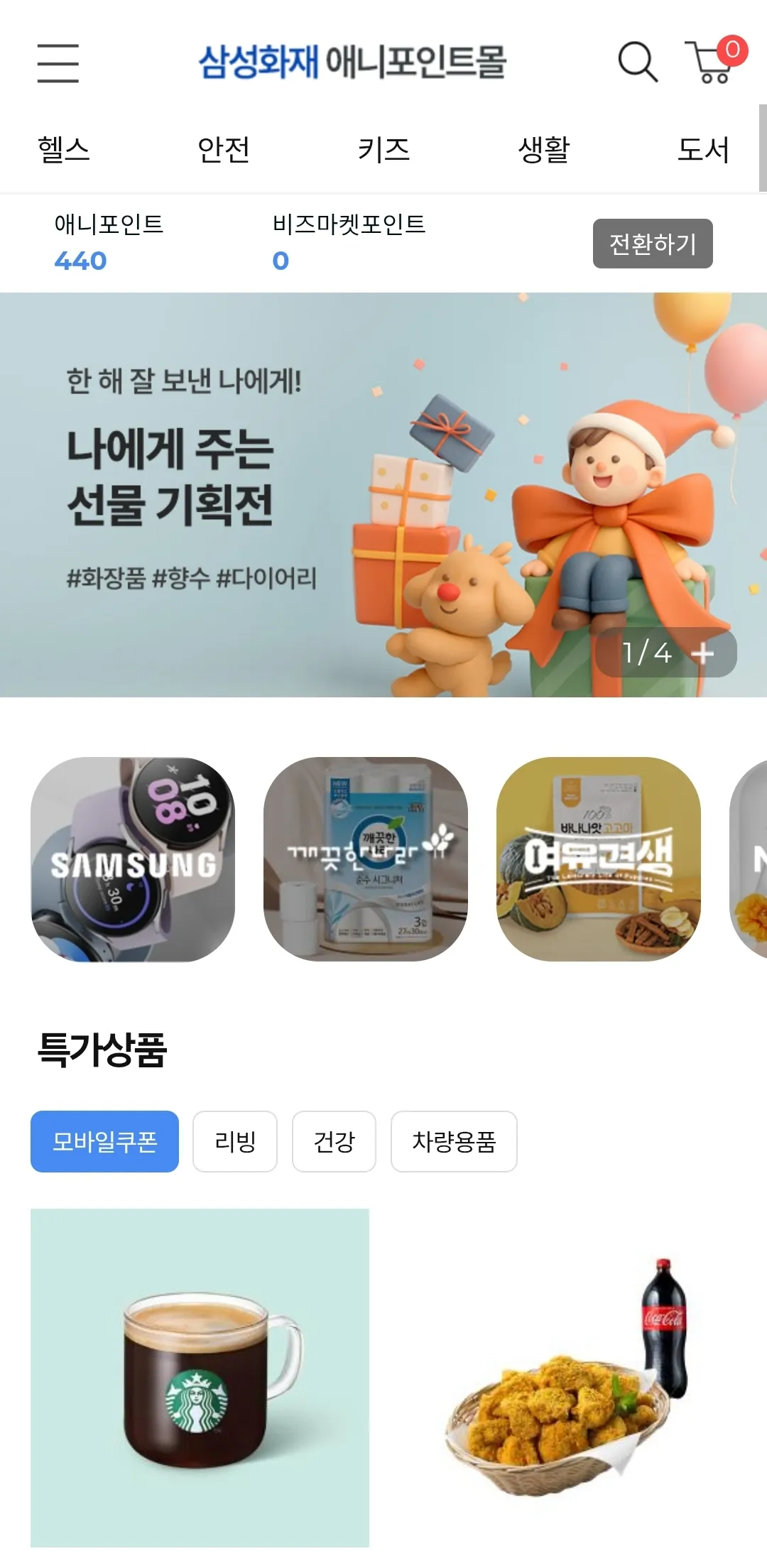 포인트 전환(비즈마켓)으로 편의점 상품도 구매 가능. 만보기 1개월로 커피 5잔 값 쌓기 쉽습니다.
