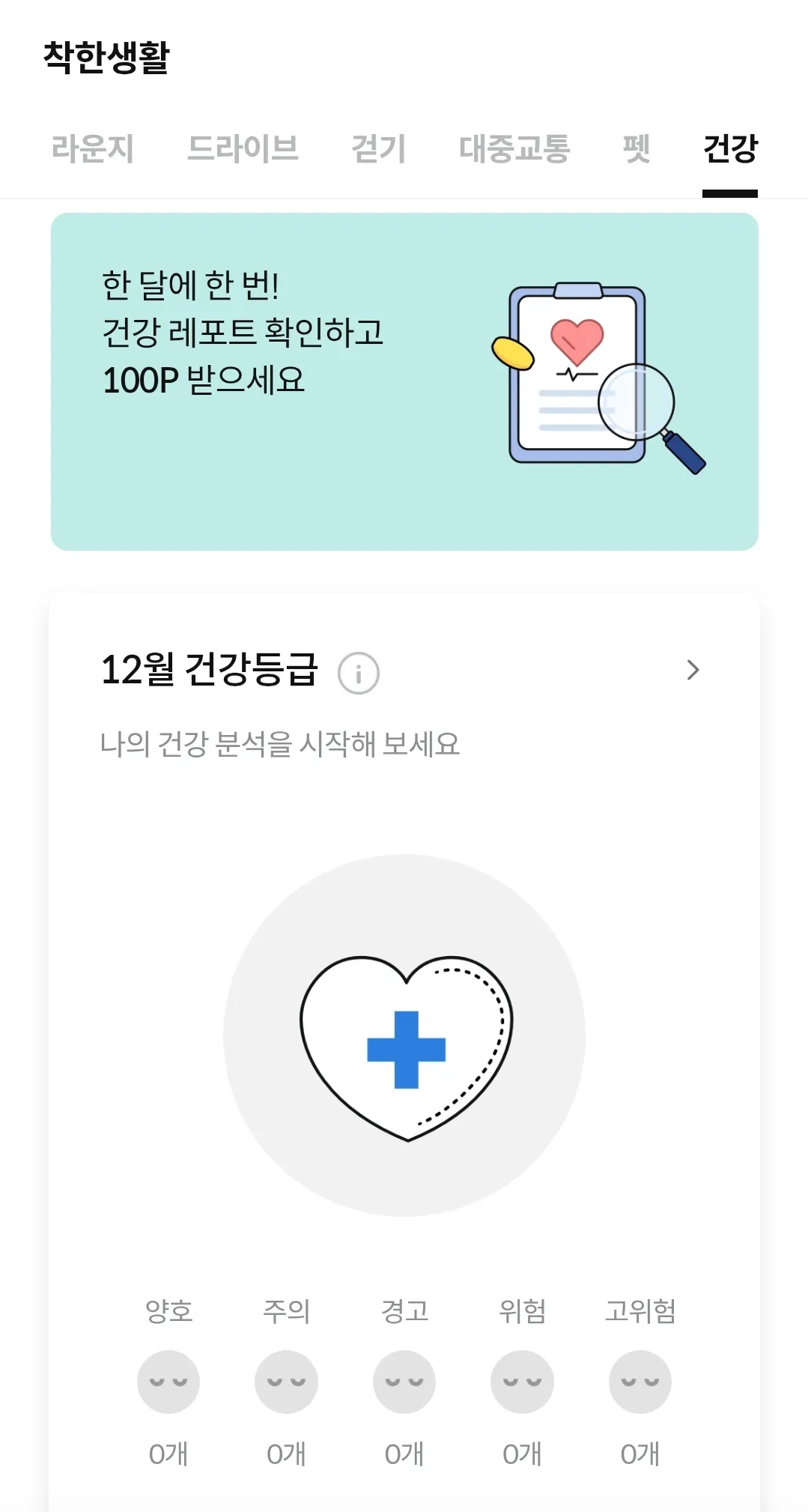 착한건강관리는 과거 건강검진 내역(카카오 인증 연동)을 업로드하면 질환 위험도 확인과 함께 포인트 적립.